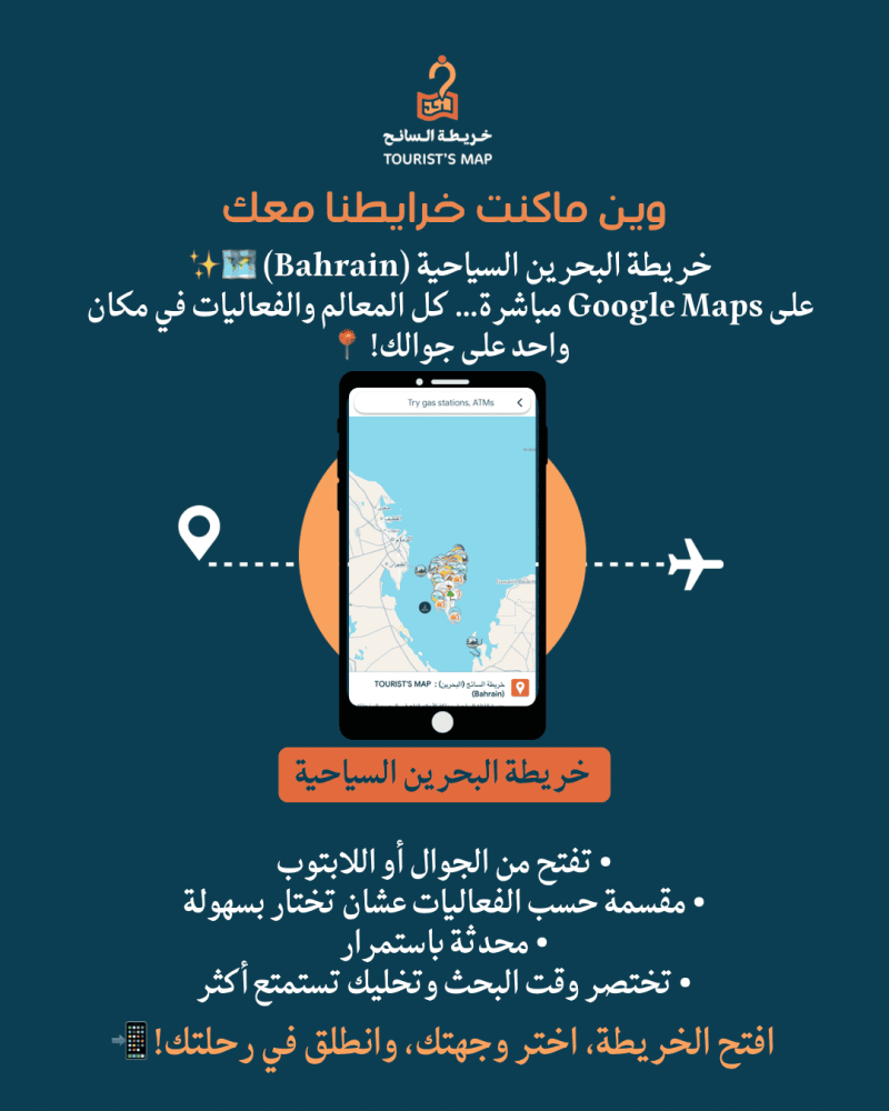 مع خريطة السائح للبحرين، بتلقّى كل اللي تحتاجه في مكان واحد: